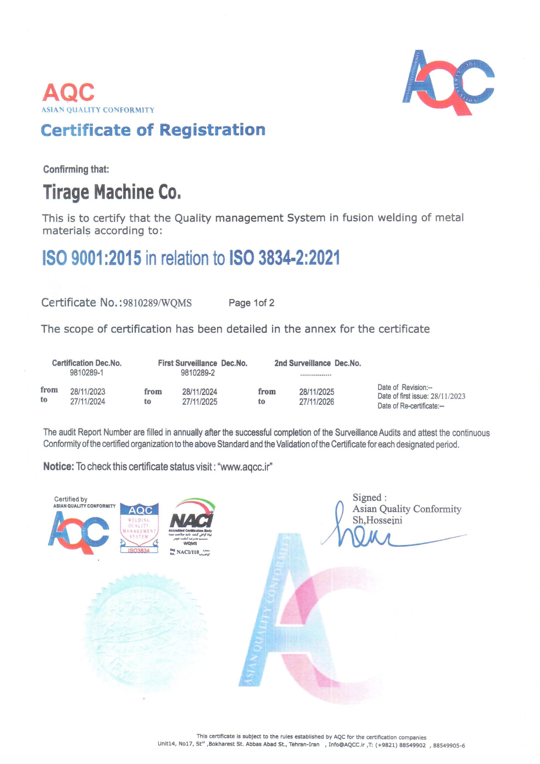 استاندارد سیستم مدیریت کیفیت جوشکاری ذوب مواد فلزی